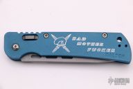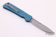 This Bad Mother Fucker side opening automatic by Rob Dalton features a bead blasted clip point blade. The handle is comprised of anodized and bead blasted aluminum over satin barrel spacers. Bead blasted stainless steel tip up clip and layard hole in pommel. "Bad Mother Fucker" and beret with crossed daggers milled into frame. Has a couple light scuffs on the clip, otherwise excellent condition.