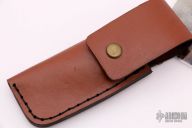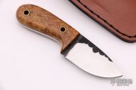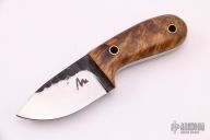 This EDC Pocket Knife by Murad Custom Knives features a hand rub satin finished blade with forge finished flats, .177" blade stock and 1.129" blade depth, full tang construction. The handle has amboyna burl wood scales with brass tube pins. Comes with a brown leather sheath and COA. New from maker.