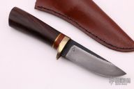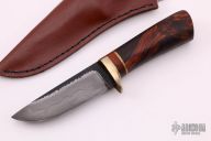 This Utility Bushcraft Hunter by Last Knives features a nice hamon and textured flats, .221" blade stock and 1.160" blade depth, hidden tang construction. The handle has a brass guard with a Japanese rosewood grip, amboyna burl and brass spacers. Comes with a brown leather sheath and COA. New from maker.