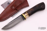 This Utility Bushcraft Hunter by Last Knives features a nice hamon and black flats, .244" blade stock and 1.125" blade depth, hidden tang construction. The handle has a brass guard with an ebony wood grip, stag and brass spacers. Comes with a brown leather sheath and COA. New from maker.