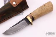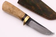 "I start making knives in the middle of 2017 just for fun. After I lost my job at the end 2017 I started to focus on making knives full time. I was learning from other makers and blacksmiths practicing and testing many types of steels. I primary use W2, O1, and sup9a (5160), secondary D2 (for corrosion resistance) and M2 for highly wear resistance. I chose W2, O1, and sup9a primary because its very easy to get very fine grain in the steel. That means it is very easy to sharpen but long lasting edge retention and upgraded toughness level. Those are the characteristics loved so much by chefs and hunters that need clean cutting knives. For handle material I like natural exotic wood and usually horn, also fossil ivory with non ferrous metal like brass, copper and some bronze."