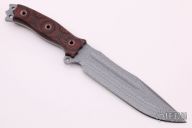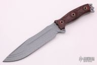 This Hell Razor 2 from Busse features a hammered silver coated blade with fullers and red/black G-10 scales. .218" blade thickness and 1.767" blade depth, full tang construction. Has large fullers on blade and corrugated bevel technology. Great look and feel. Excellent work. New from maker.