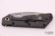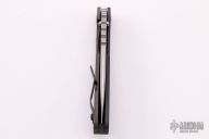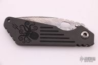 This MSC SMF framelock folder by Mick Strider features a laser engraved blade and a grey aluminum and flamed titanium frame and tip up titanium clip. Includes Hinderer "Lock Bar Stabilizer" for maximum reverse lock retention. Nice detent, lockup and blade seating. New condition.