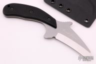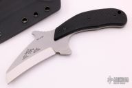 This Nettle by Emerson Knives features a stonewashed blade with notched thumbrest, .126" blade stock and 1.300" blade depth, full tang construction with black G-10 scales. Comes with a kydex sheath and original box and papers. #7 of 128 and signed on the blade by Ernie Emerson. Excellent condition.