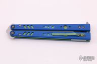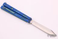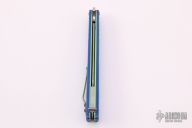 This BRS Replicant Select features a satin finish clip point blade. The handle is comprised of blue G-10 scales over anodized titanium liners and tumbled titanium backspacers. Stainless steel T latch. Tip up 4-way reversible titanium clip. Comes with original box and papers and papers. Excellent condition.