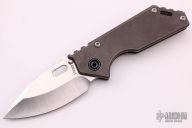 This 3/4 AR by Strider Knives features a stonewashed blade with notched thumbrest and thumbhole. The handle has a tumbled and anodized titanium frame with a stonewashed titanium tip up clip. Nice detent, lockup and blade seating. Has some scuffs scratches, good condition.