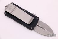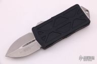 This Microtech Exocet features a 204p stonewash finish spear point blade. The handle has a black aluminum handles and a stainless clip that doubles as a money clip dated 06/2020 s/n 10073. Comes with original box and papers. Excellent Condition.