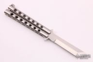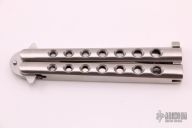 This balisong by 29 Knives features a satin finished blade with swedge. The handle is composed of satin finished integral stainless steel. Has some light scratches, otherwise excellent condition. Comes with a zippered case