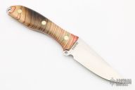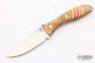 This Crab Shack Custom by Busse Custom Shop features a satin finished sheepsfoot blade with .091" blade stock and 1.181" blade depth, full tang construction. The handle has stabilized wood scales. New from maker.