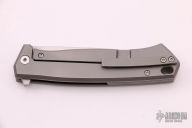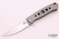 This Arsen framelock flipper by KD Knives features a hand rub satin finished blade with a flipper. The handle has a bead blasted titanium frame with a matching backspacer and tip up clip. Rides on bearings, nice detent, lockup and blade seating. Comes with original hard case and COA dated 8/2/19. Excellent condition.