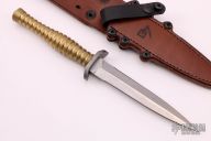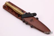 The Rook 6 Dagger project has been a long time in the works. We have managed to add several new spins on this traditional style dagger, that we feel set it apart from the rest of the field. The blade is 6 inches long, which accounts for the 6 in the Rook 6. The butt end of the knife reminded us of the rook piece in a chess set, bringing the whole thing together. The back of the guard has grip grooves machined into it, so when you put your thumb against it, it locks in. To get that, the guard is machined out of material over half an inch thick, not bent. The Chattanooga Leather works sheath is MOLLE compatible and brings the whole package together. Comes with original box, new from maker at the 2021 NYCKS.