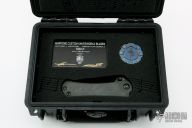 This SBKF by Borka Blades features a DLC stonewash finished blade with dual thumbstuds. The handle has a carbon quartz and stonewashed DLC titanium frame with a matching tip up clip. Nice detent, lockup and blade seating. Comes with pelican case with COA and HiTex coin. New from maker at the 2021 NYCKS.