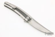 The Persian by Richard Rogers. It features a bead blasted blade with notched flipper. The handle has a fine quilted texture titanium frame, fine golf ball textured zirconium inlays, floating titanium backspacer, tip up titanium clip. Nice detent, lockup and blade seating, rides on bearings. Comes with COA dated April 2021. Excellent condition.