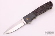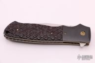 "I have been a fulltime maker since 1993 and am proud to be a voting member of the Knifemakers Guild. Most of my work is in embellished locking folders, with an occasional art fixed blade. In 1994 I began doing my own engraving and started making Damascus in 1999. I prefer natural handle materials such as mother of pearl, fossil Ivories and stone. Blade steel is my Damascus (unless otherwise noted) or one of the high quality stainless steels currently available. The embellishments I offer are engraving, gold inlay, mosaic pearl inlays, file work, carving and solid 14K gold screws and thumb studs that I make in shop."