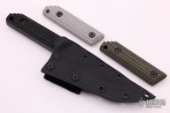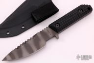 This HT-S by Strider Knives features a tiger striped spear point blade with a notched thumbrest and a full tang construction.  .208" Blade Stock.  1.487" Blade Depth.  The handle features black G-10 scales.  This knife includes two extra sets of G-10 scales and a black kydex sheath. Excellent Condition.