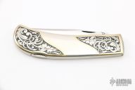 My career in custom knifemaking began in 1986 when I met Buster Warenski who taught me the art of engraving. I was taking an engraving class, which he taught, and later that year we were married. Within one year I was engraving every knife we made and also engraved for many other knifemakers and customers all over the world. Over the years I worked in many areas of knifemaking helping with knife designs and also making many parts of our knives, as well as doing all the embellishment on them. We had a great marriage and awesome relationship until he was so unexpectedly taken away forever. He used to joke that he was going to teach me how to grind the blades so he could just retire, but I quickly let him know that there was no way this was going to happen. I often wish now that he had taught me his techniques to grind the knife blades. After Buster’s passing, I had a strong desire to make knives and continue to make the great art knives that I had worked on and had a unique partnership with for the past 20 years. A past student of Buster’s, Curt Erickson, had offered to help teach me to grind the way Buster had taught him. He was the only person Buster had really tutored in knifemaking and I graciously accepted his offer. After working with Curt and with his help I won the Buster Warenski award for the best Art Knife at the New York knife show in February 2006. We were married in 2006, and now work together in a new and exciting partnership in knifemaking. There will be many fabulous knives in our future together as we are dedicated to making some of the best art knives possible.