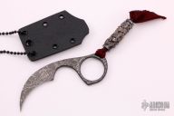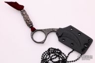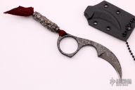 This Diagnostic Neck Knife from Bastinelli features a karambit style PVD coated chisel ground blade with false top edge and notched thumb rest. The integral style incorporates a handle with a pronounced index finger choil and 1-inch finger hole for secure grip. Lanyard hole, lanyard and bead provide for increased grip/retention. Includes kydex neck sheath and a padded zippered case. New from maker!