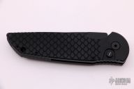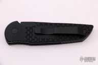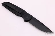 This TR-3 X1 by Pro-Tech Knives features a black spear point blade. The handle has a black aluminum handle with stainless steel backspacer with lanyard hole, tip up blade stainless steel clip.  There is a tritium insert in the push button. Includes the original box and papers.  New From Maker!