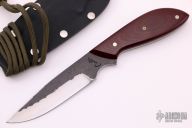 This neck knife by Murray Carter features a laminated blade with polished grinds, forged finished flats and a full tang construction.  .110" Blade Stock.  .889" Blade Depth.  The handle features micarta scales.  Includes a kydex sheath.  Excellent Condition.