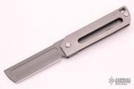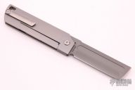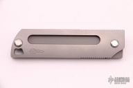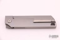 The MaximX (SpaceXi) Flipper version 1 is the LARGE brother of the SpaceX.  The MaximX is the second version of the SpaceX that runs on bearings that allows it to almost fly open.  Its complexity is in its simplicity.  It is sleek and simple, but with a complex 6 face grind with fullers.  It is a modern take on your grandfather’s pocketknife.  It is a pleasure to hold and use.  The Blade is M390 high grade knife steel and the handles are bead blasted titanium.  Comes with original box. New from maker at the 2021 USN Gathering.