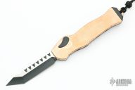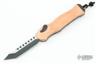 This Hydra by Heretic Knives (Anthony G. Marfione) features a two-tone black tanto blade. The handle has a stonewashed copper and black aluminum frame, black titanium clip, stainless steel and copper charging handle. Comes with original box and papers. S/N 00948. New from maker at the 2021 NYCKS.