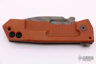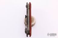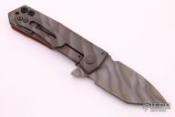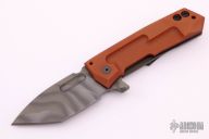 This Metro framelock flipper by Crusader Forge is a One-Off, it features a "3D" finish blade and notched thumbrest, fuller and flipper. The handle is comprised of a matching titanium frame and contoured vintage paper micarta scale with a lanyard hole at the butt. Matching titanium clip positioned for tip up carry. Nice detent, lockup and blade seating. Excellent condition.