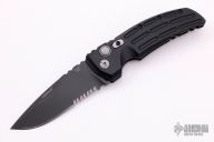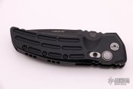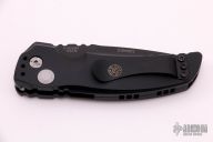 This EX-A01 by Hogue Knives is an Allen Elishewitz design, it features a black drop point partially serrated 154CM blade with notched thumbrest. The handle is black aluminum, tip up or down reversible black stainless steel clip. Has safety. Comes with Hogue box, papers and nylon sheath. Excellent condition.