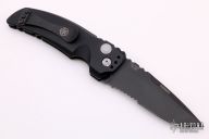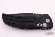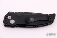 This EX-A01 by Hogue Knives is an Allen Elishewitz design, it features a black drop point partially serrated 154CM blade with notched thumbrest. The handle is black aluminum, tip up or down reversible black stainless steel clip. Has safety. Comes with Hogue box, papers and nylon sheath. Excellent condition.