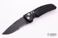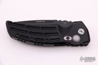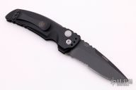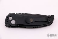 This EX-A01 by Hogue Knives is an Allen Elishewitz design, it features a black drop point partially serrated 154CM blade with notched thumbrest. The handle is black aluminum, tip up or down reversible black stainless steel clip. Has safety. Comes with Hogue box, papers and nylon sheath. Excellent condition.