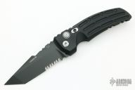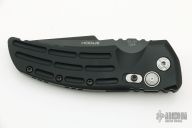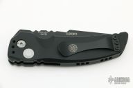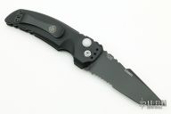 This EX-A01 by Hogue Knives is an Allen Elishewitz design, it features a black tanto partially serrated 154CM blade with notched thumbrest. The handle is black aluminum, tip up or down reversible black stainless steel clip. Has safety. Comes with Hogue box and papers. Excellent condition.