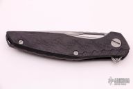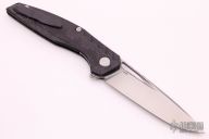 This Model 111 Gen5 by Shirogorov Knives has a tumble finished blade with thumbhole, notched thumbrest and flipper. The handle has purple carbon fiber scales, anodized backspacer and titanium tip up clip with hidden screws, stainless steel single liner. MRBS. Dead center blade seating, excellent detent and lockup, and flips superbly. Comes with original box and papers. Knife is in excellent condition.