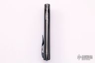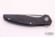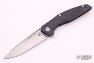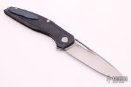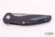 This Model 111 Gen5 by Shirogorov Knives has a tumble finished blade with thumbhole, notched thumbrest and flipper. The handle has blue carbon fiber scales, anodized backspacer and titanium tip up clip with hidden screws, stainless steel single liner. MRBS. Dead center blade seating, excellent detent and lockup, and flips superbly. Comes with original box and papers. Knife is in excellent condition.