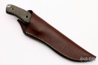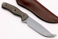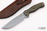 This Ratmandu by Swamp Rat Knives features gray coated clip point blade, .198" Blade Stock and 1.386" Blade Depth, full tang construction. The handle is contoured OD Green micarta scales. Includes a brown leather sheath and a padded zippered case.  Excellent Condition.