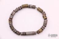 Stainless steel and brass cable bead bracelet by Tim Miller. Has a magnetic clasp. 9" overall.  New from maker. At the 2021 NYCKS.