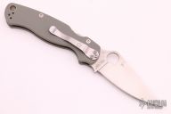 This Paramilitary 2 Linerlock Folder has a satin Elmax clip point blade with thumb hole and notched thumb rest. Handle is G10 with stainless steel liners and stainless steel 4-way reversible clip. Comes with original box and paperwork. Has a couple light scuffs, otherwise excellent condition.