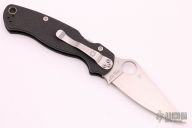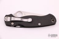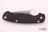 This Paramilitary 2 Linerlock Folder from Spyderco has a satin finished clip point blade with thumb hole and notched thumb rest, this knife has a laminated steel blade consisting of CPM154/S90V. Handle is textured carbon fiber with stainless steel liners and stainless steel 4-way reversible clip. Comes with original box. Excellent condition. From what I can tell, only 300 of these were made.
