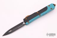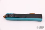 This Ultratech OTF automatic by Microtech features a D/E black blade. Black aluminum contoured frame with black tip down stainless steel clip. Dated 03/2021 and s/n 079. Excellent condition.  Comes with original box and papers.