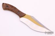 This One Off by Brandon Corbin features a two-tone blade with false top edge, .149" blade stock and 2.175" blade depth, full tang construction. The handle has curly koa scales. Comes with a zippered case. New from maker at the 2021 KYCKS.