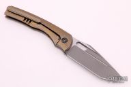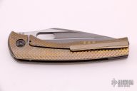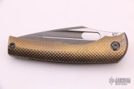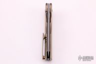 This BBM V2 by Nick Chuprin and Robert Carter features a two-tone stone wash finish blade with satin flats, fullers, thumbhole and milled bevels. The handle has a cracked ice 3D grid contour titanium frame, Titanium and tip up clip with hidden screws. Zirconium (blackout) hardware and pivot. Rides on Skiff Made bearings, nice detent, lockup and blade seating. Comes with a zippered case. New from maker.