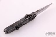 This Friction Folder by Nick Rossi features a forged blade with curly Q friction folder style opening. The handle is a single piece of forged mild steel that is naturally patina'd and has a forge finished texture, tip down forged clip. New from maker at the 2021 KYCKS. Pretty cool little piece.