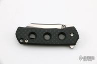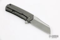 This Imp Framelock Flipper by NCC Knives features a stonewashed blade with milled bevels. The handle has a carbon fiber and tumbled titanium frame with titanium hardware and tip up clip with hidden screws. Comes with original box. New from maker at the 2021 KYCKS.