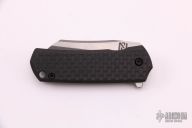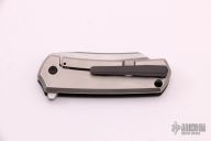 This Imp Framelock Flipper by NCC Knives features a stonewashed blade with hand ground bevels. The handle has a carbon fiber and orange peel finished titanium frame with titanium hardware and tip up clip with hidden screws. Comes with original box. New from maker at the 2021 KYCKS.