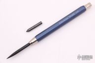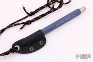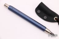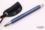 This spike pen features a black oxide finished spike that is deployed by pressing the button at the rear of the pen. This pen has been internally modified to accept and eject the spike with the push of the rear button. A piece of pencil graphite is positioned at the tip to conceal the spike. Works as a functioning pencil. New from maker. Very cleaver. Comes with a kydex neck sheath.