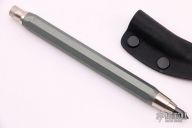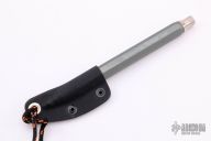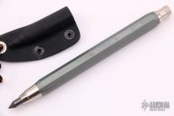 This spike pen features a black oxide finished spike that is deployed by pressing the button at the rear of the pen. This pen has been internally modified to accept and eject the spike with the push of the rear button. A piece of pencil graphite is positioned at the tip to conceal the spike. Works as a functioning pencil. New from maker. Very cleaver. Comes with a kydex neck sheath.