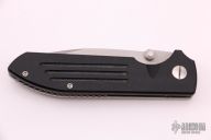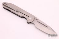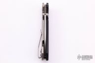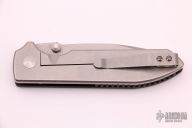 This Dauntless MK4 by T.A.D. Gear features a tumble finished spear point blade with swedge, fullers, dual thumb studs and notched thumb rest. The handle is comprised of a black G10 "A" side and tumbled titanium lock side over a notched black G10 backspacer. The bead blasted titanium deep carry clip is positioned for right hand, tip up carry. Excellent condition.