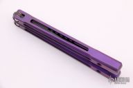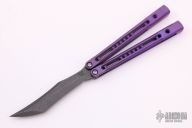 This Monarch balisong by Hansen Metals and JK Design features a milled, acid washed, upswept recurve clip point bade. The handles are comprised of anodized titanium with bronze phosphorus washers and steel bushings. Marked JK|JH on the handle. Comes with Zipper case, makers card, and stickers. New from Maker.