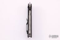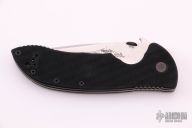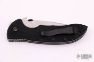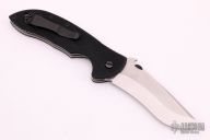 This Commander by Emerson Knives has a stonewashed drop point recurve blade. The blade features a swedge, knurled thumb disc and wave feature with notched thumb rest. The handle is comprised of black G10 scales over titanium liners and black G10 Backspacer. Stainless steel tip up pocket clip. Lanyard hole in pommel. Comes with original box, excellent condition. #1716