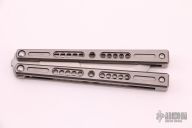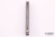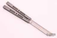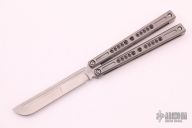 This Solo balisong by Hansen Metals features a milled, bead blast finish straight-back blade. The handles are comprised of bead blast finish titanium with bronze phosphorus washers and steel bushings. Comes with Zipper case, makers card, and stickers. New from Maker.