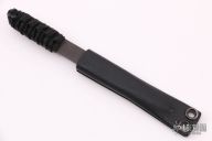 In 1988, he began making specialized knives for use by the military. This turned out to be fortunate turn of events, both for Mick and for the knife using world at large. Mick’s approach was to not get burdened by the weight of past designs. He started with a tabula rasa, a clean slate, informed only by his own experiences and knowledge of what a soldier needed in a knife. The knives he made didn’t look like the hunter-inspired knives seen in most PXs; instead they were almost brutish in their functionality: beefy, solid, and with unbreakable ¼” stock full tangs. These knives were the first indication of his innovative approach: in addition to their utilitarian design, the knives carried a subdued finish and subdued sheaths. No one carrying a Strider knife was going to be spotted because of sunlight glinting off of polished steel or a glossy leather sheath. Soldiers, policemen, and other men going into harm’s way couldn’t buy them fast enough. Mick sampled some good ideas, but made them great. For instance, he was not the first to wrap a knife handle with paracord, but he was the first to do it in a way that was tough enough for sustained infantry use. His knife line grew over the following years to include different varieties of fixed blades, all distinctive and many with specialized uses. But constant in all of them was a disregard for convention, and a desire to try new ideas. An example of this was the Ajax – it featured a very wide blade surface clearly designed to inflict damage. It drew on the weapons carried by Roman legionnaires, yet was modern and usable in the 21stCentury battlefield. Mick also worked on his technical skills, always striving to become better at the physical craft. At the 2002 Blade Show, a group of the best tactical knifemakers in the country decided to compete with each other to produce the most innovative and interesting fixed “battle blade” at the show. Mick’s entry, an incredible integral knife made out of ½” titanium stock with a zippered composite blade, gorgeous handles, and integral guard was the unanimous winner, and effectively retired the competition.