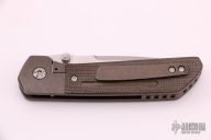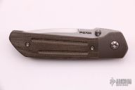 This Mula bolster lock by Enrique Pena is a TAD Gear edition, it features a hand rub satin finished drop point blade with swedge, notched thumbrest and dual thumbstuds. The handle has a tumbled titanium frame with green canvas micarta scales, tumbled titanium backspacer, tip up tumbled titanium clip. Includes padded and zippered case and TAD box. Nice detent, lockup and blade seating. Excellent condition.